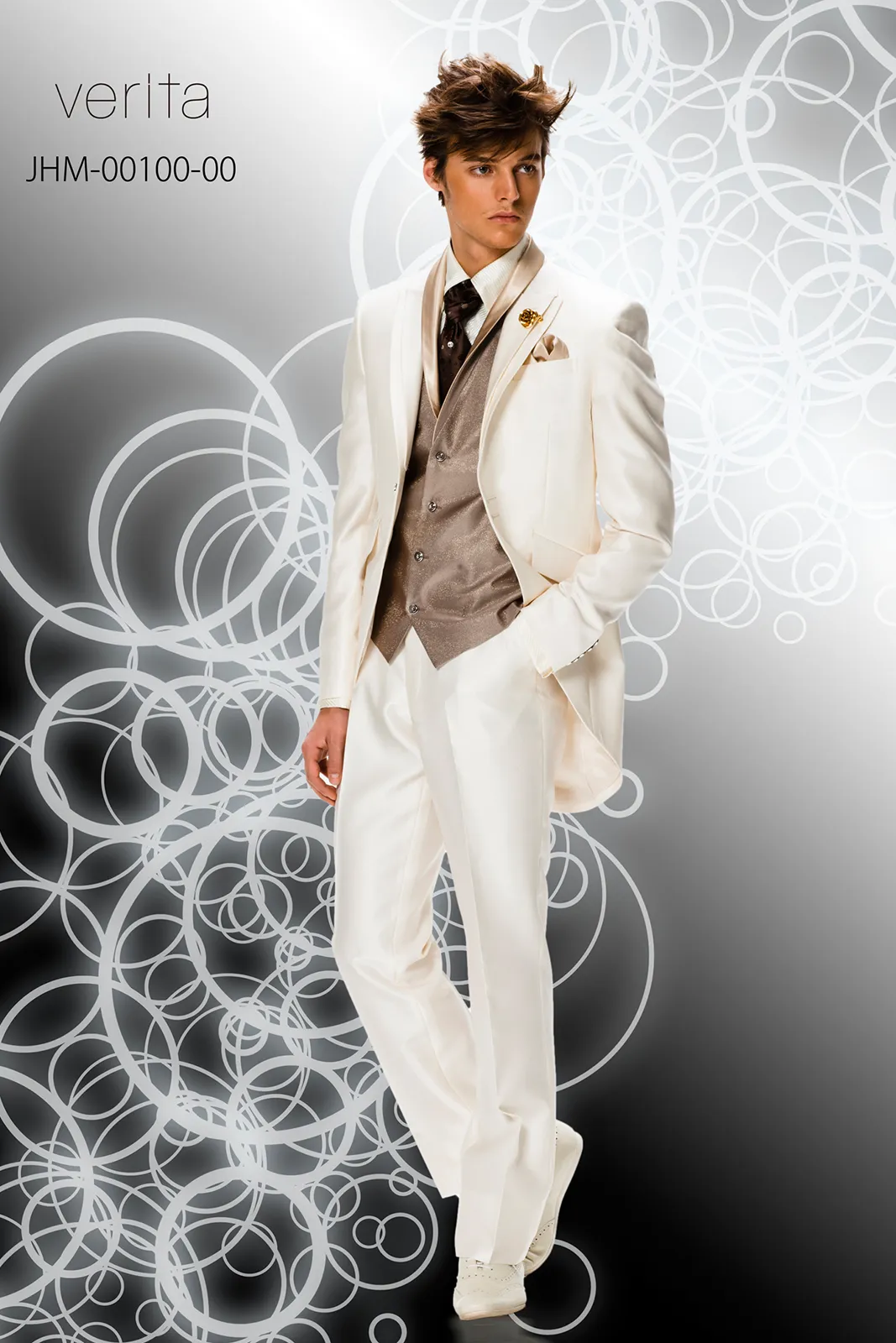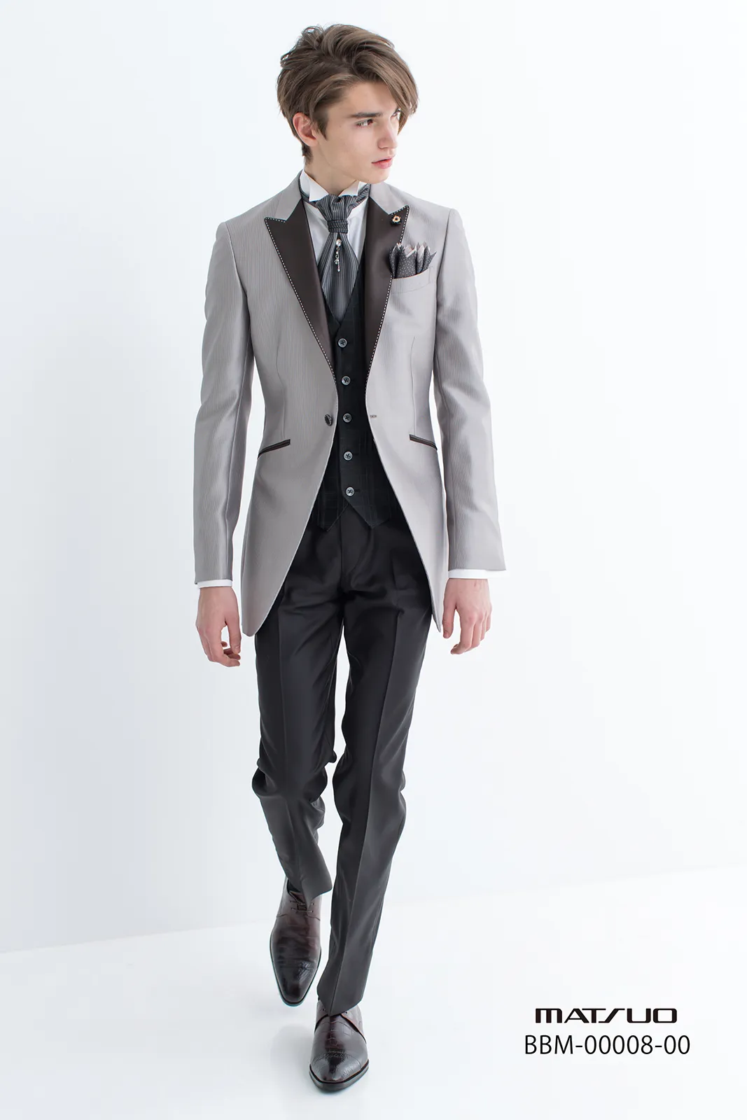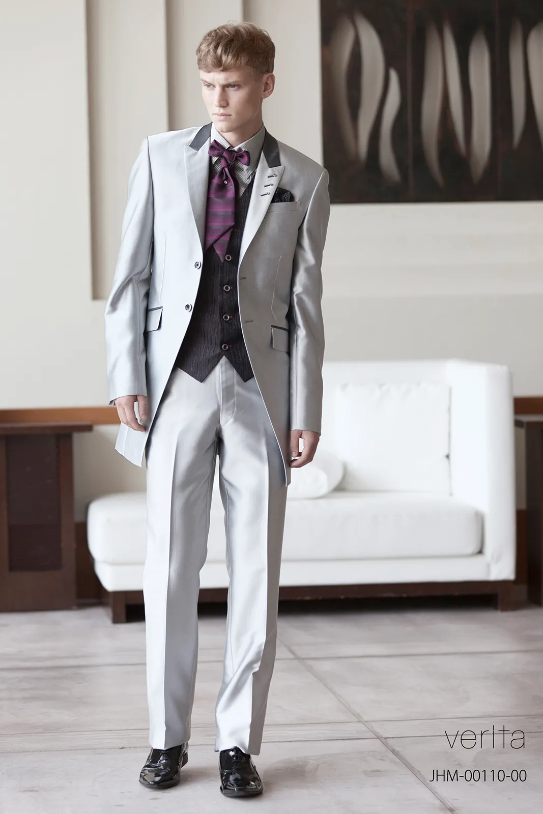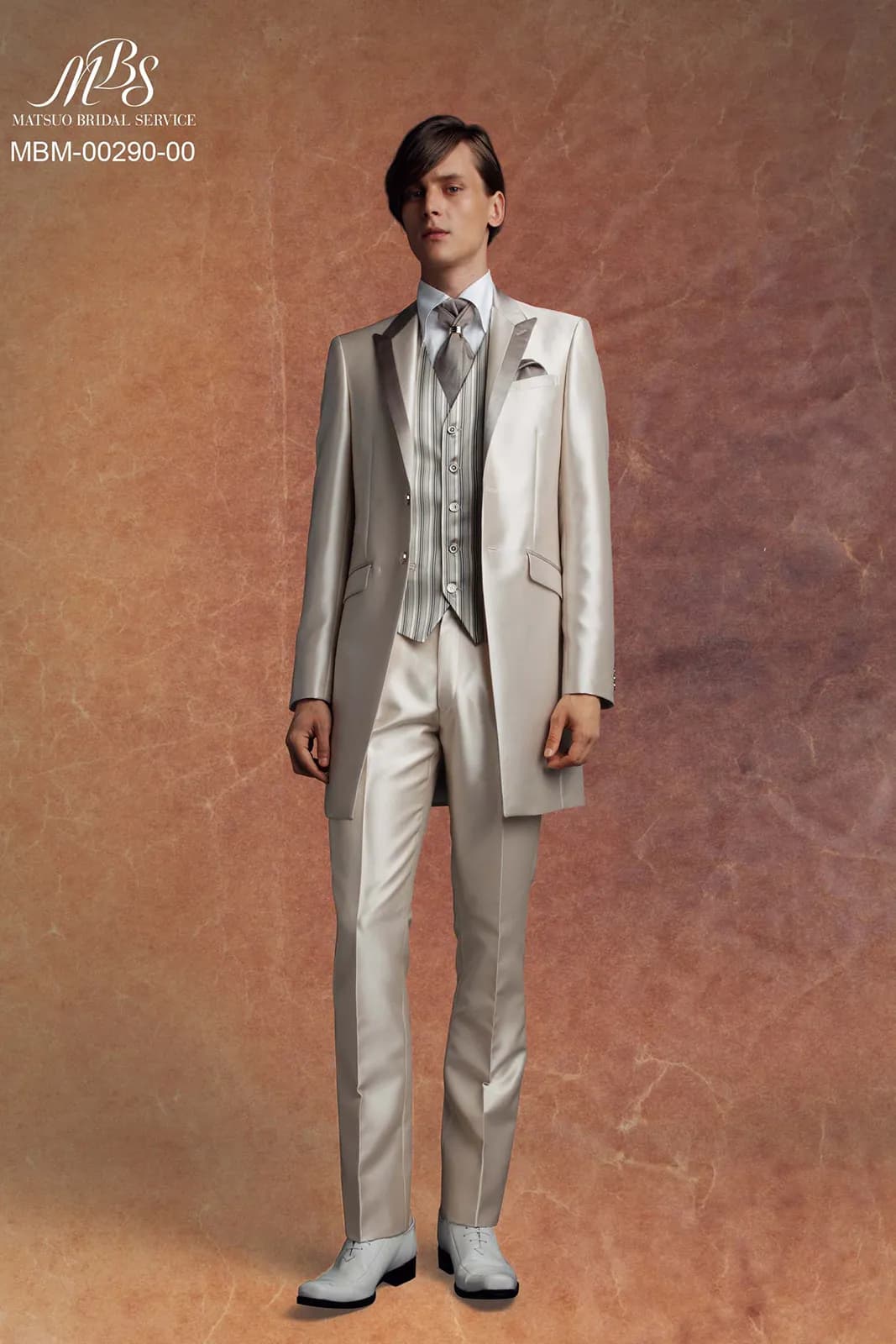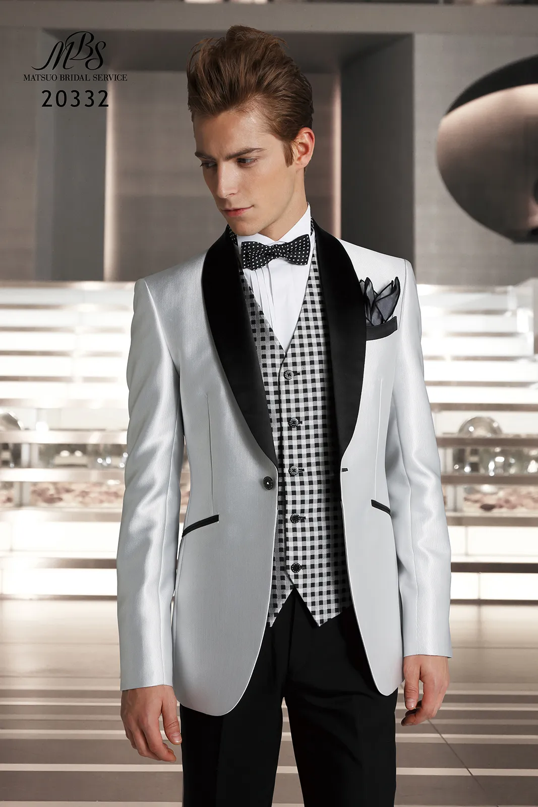 結婚式で最も多く着用されるのがタキシードですが、形だけではなくサイズ、 色のバリエーションも豊富で、普段着ることが少ない白系タキシードや、 光沢感があり個性的なデザインのタキシードは当日の結婚式をより素晴らしいものにしてくれるでしょう。 結婚式の雰囲気、花嫁の衣裳とのバランスを考えて新郎も主役にふさわしい一着をお選び頂ければ幸いです。