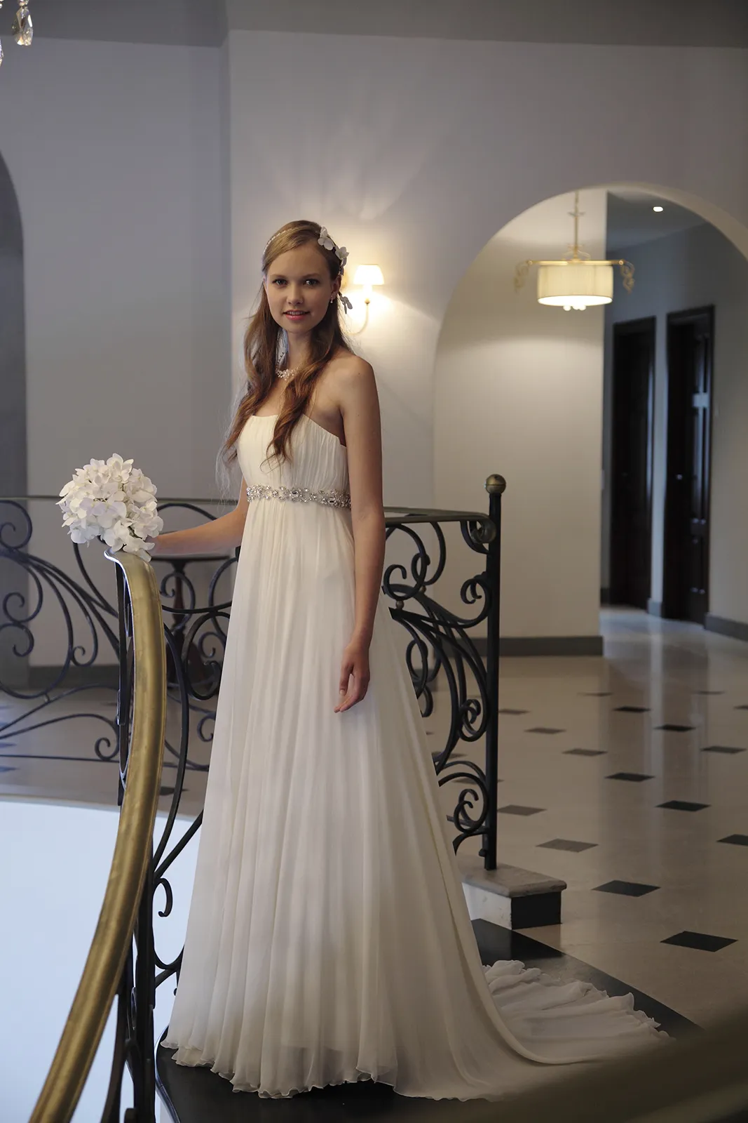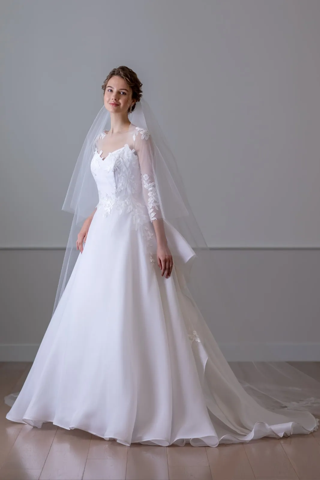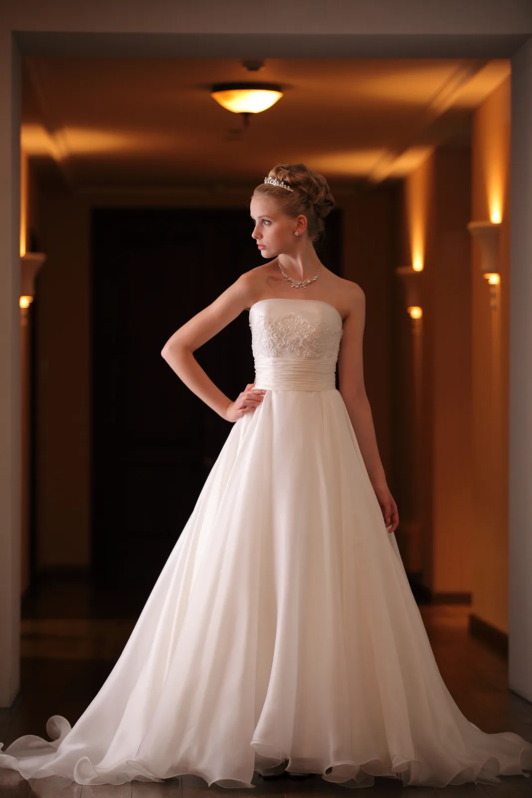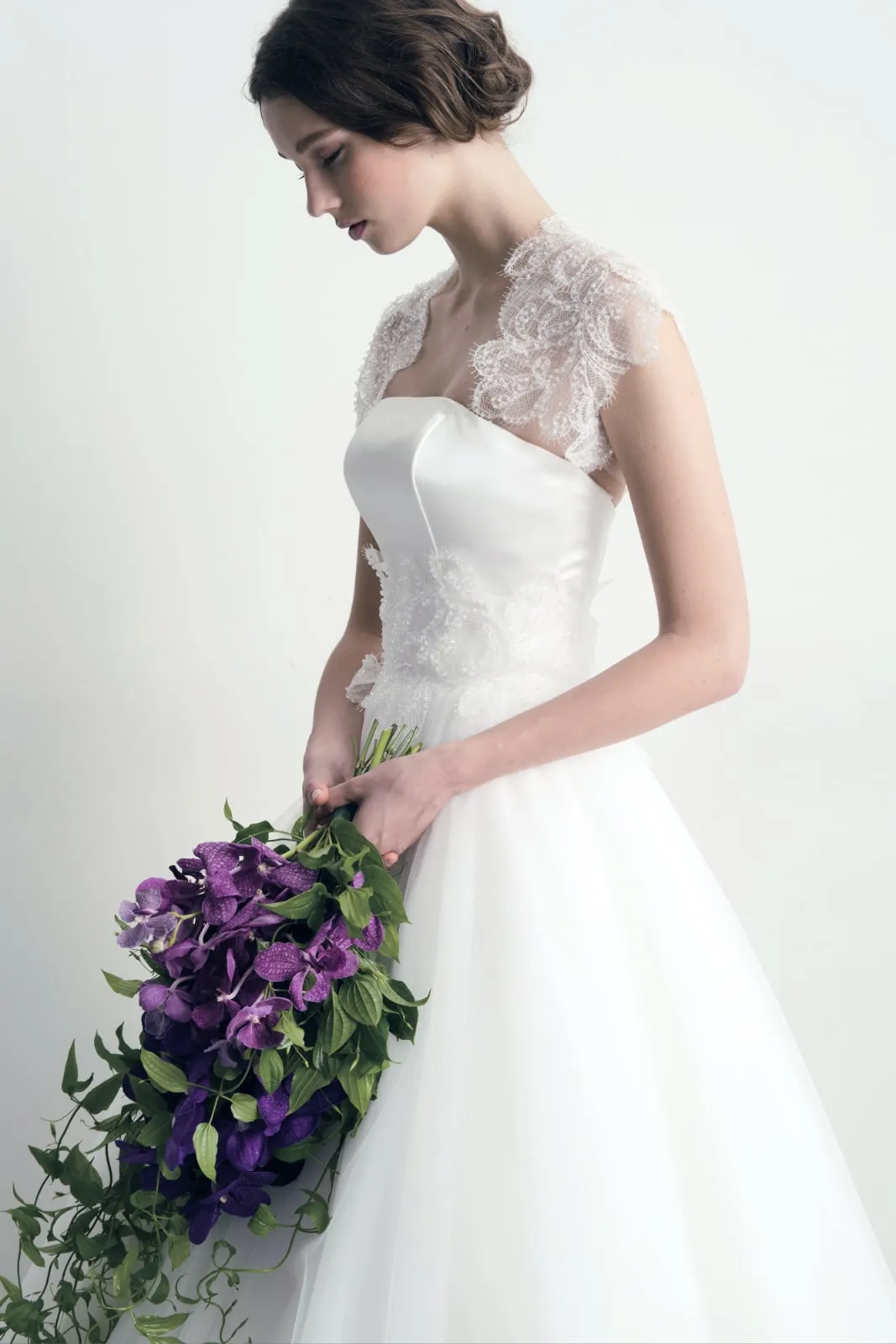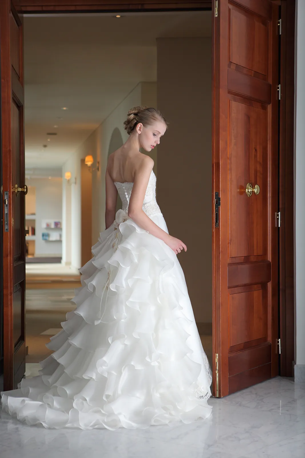 一生に一度のドレス選びはゆっくり時間をかけてお選び下さい。ご自身の好みや雰囲気に合うか等は、 ドレスのシルエットや素材感によって異なりますので、色々なドレスを着比べてみて下さい。 主に後姿が注目されるチャペル挙式をご希望されている方にとってはバックスタイルも非常に重要ですので、 トレーンの長さも大切なポイントとなるでしょう。自分を最高に輝かせてくれる運命の一着を見つけて、 素敵な結婚式の一日をお過ごし下さい。
